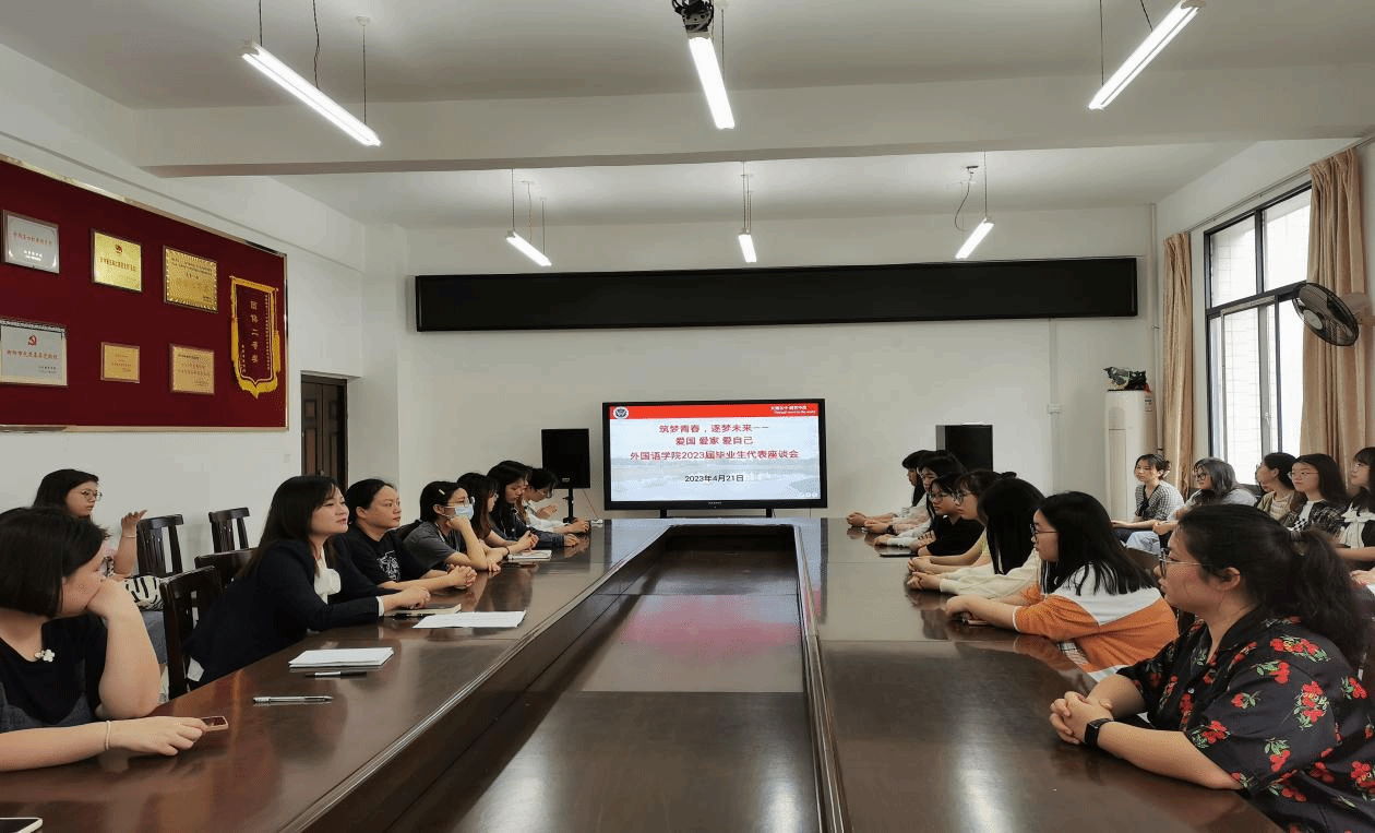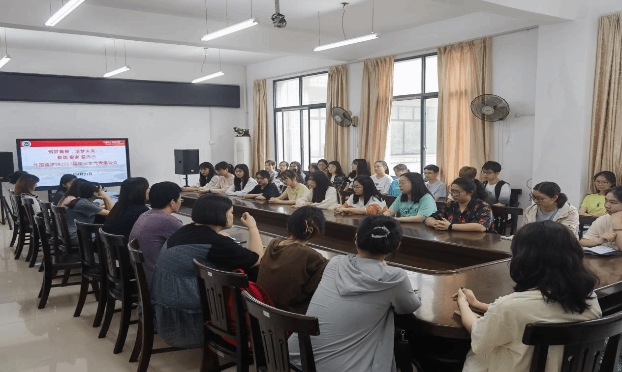 为更好地了解2023届毕业生在成长与就业方面的需求,进一步提高我院人才培养质量,4月21日上午,我院在外语楼南213会议室召开2023届毕业生代表座谈会。学院党总支书记贺琴琴、副院长谢彩虹出席会议,学工办主任邱国周及2023届毕业生代表参加座谈会,会议由贺琴琴主持。
