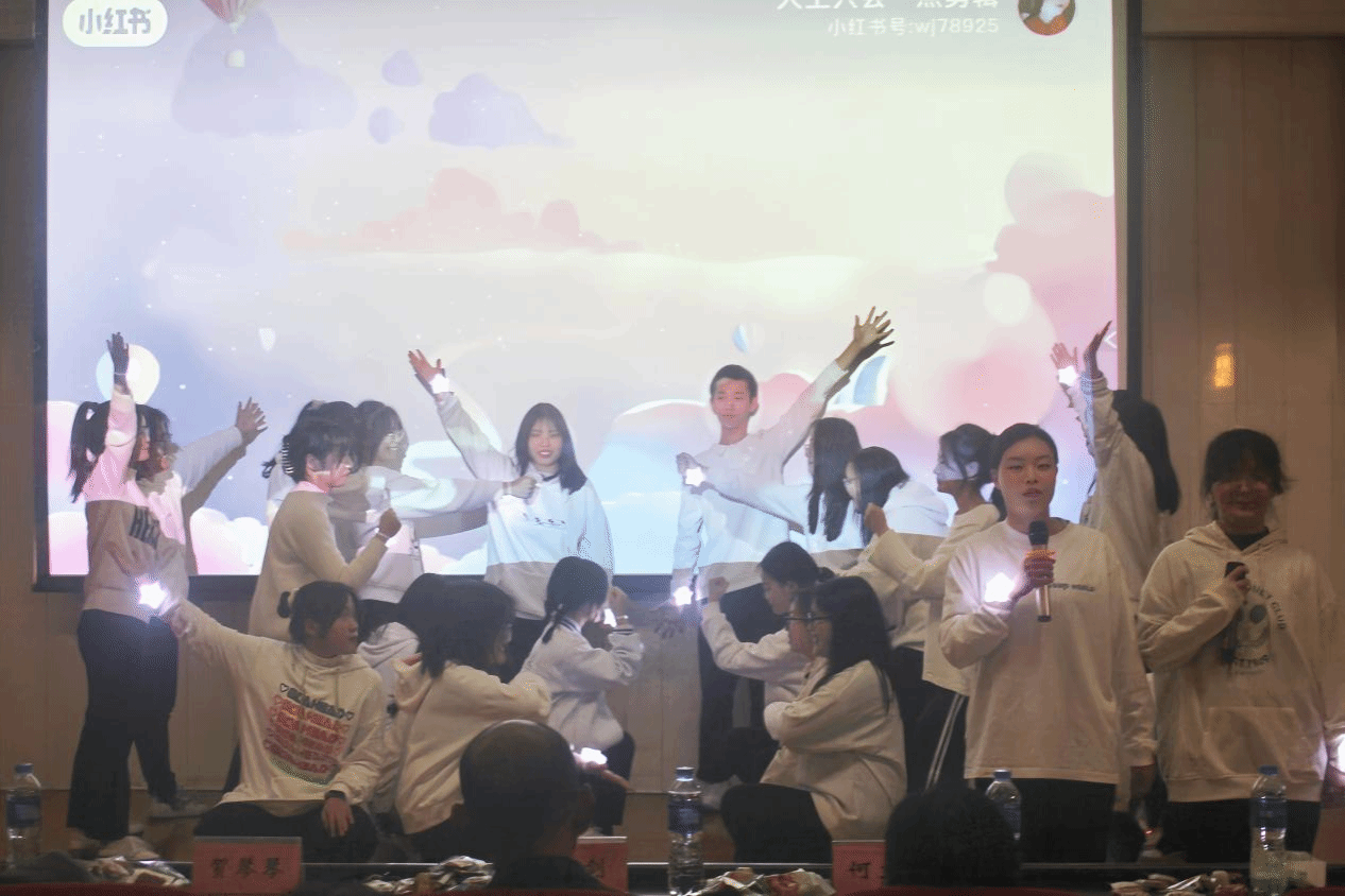 一首歌曲串烧将晚会的气氛推向高潮,从观众热情的掌声和尖叫中也听出了同学们对班导和学生会干部们深深的感情!