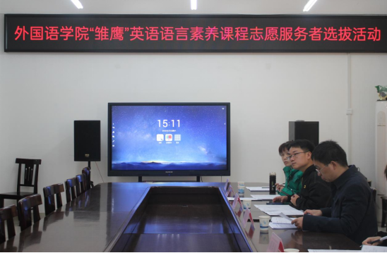 2月25日下午3点,我院在外语楼南213会议室举办“雏鹰”英语语言素养课程志愿服务者选拔活动,衡师附小副校长罗灿,教师代表王天伟、欧阳文、梁媛以及志愿者代表戴桑榆、周若兰、罗碧玉担任评委,辅导员刘志伟老师到场指导,21-22级志愿者们积极报名,认真准备,参加此次选拔。