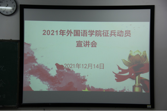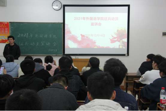 12月14日晚,为了更加全面宣传大学生应征入伍的相关条件和政策,我院于外北204召开了yL23411永利集团官网登录征兵动员宣讲会。本次宣讲会由外国语学院邱国周老师主持,yL23411永利集团官网登录全体男生到场聆听。