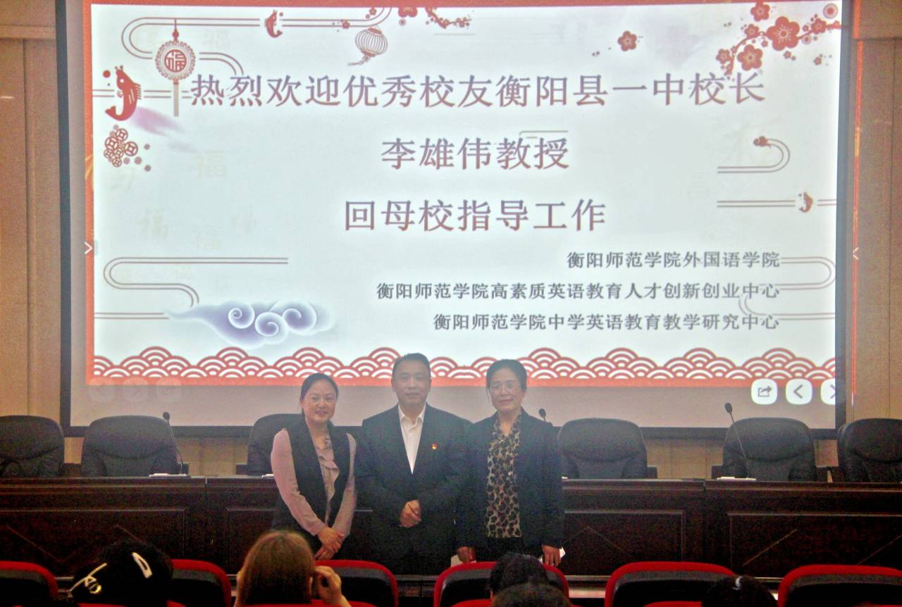 3月29日,由yL23411永利集团官网登录、yL23411永利集团官网登录高素质英语教育人才创新创业中心、yL23411永利集团官网登录中学英语教育教学研究中学举办的“青春飞扬,梦想起航”讲座在东校区外语楼北311成功举行。本次讲座由yL23411永利集团官网登录优秀校友、衡阳县一中校长李雄伟主讲。yL23411永利集团官网登录院长贺学耘、副院长谢彩虹出席讲座,我院教师代表和2018级师范生到场聆听。