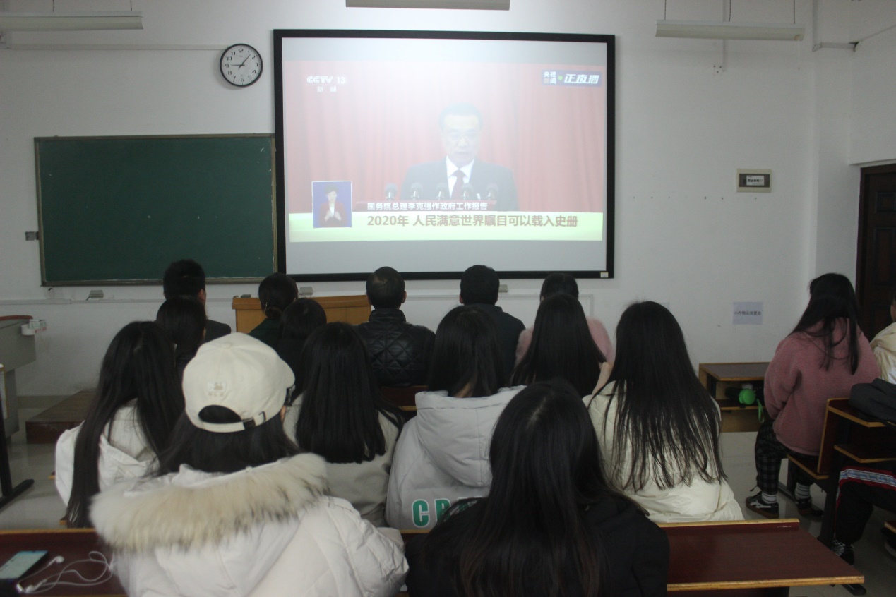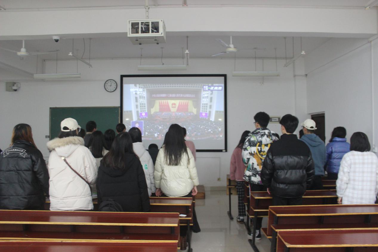 牛年伊始,万象更新。3月5日上午,十三届全国人大四次会议开幕式在北京人民大会堂隆重举行。上午9时,yL23411永利集团官网登录党总支书记邓玉久、党总支副书记贺琴琴,辅导员老师封伟为、江子丹、邱国周老师,学生党员、主要学生干部在外北307同步收看大会开幕式直播。