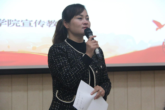 在最后一位参赛选手饱含深情地演讲完毕后,党总支副书记贺琴琴为本次演讲比赛做了精彩点评。