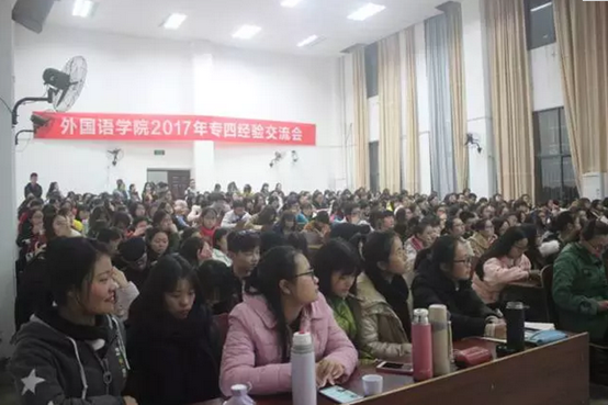 11月22日晚7点,我院在外北110开展2017年专四经验交流会。参加交流会的有马超老师,刘也玲老师,15级学生代表李清,刘阳和刘迪以及16级全体学生。