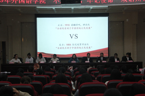 1910对战1806:双方辩手针对“全球化是否有利于中国传统文化发展”这个辩题,展开了一番激烈的角逐。正方从“三个有利于”论述了己方观点,即全球化有利于:审视自我加强保护、融汇精华发展自我、获得国际关注与支持。反方则通过强调“传播”、“发展”两个概念来阐明“传播不等于发展”这一观点,并提出全球化带来的外来文化与中国传统文化有所冲撞,会使得本土文化的内涵与更新能力逐渐模糊。