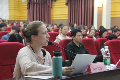 精彩的辩论赛结束后,Miss.Zhou针对三场辩论赛分别作出了点评,她从英语发音和辩论内容两个方面表达了自己的看法,在肯定双方精彩表现的同时,也指明了辩论过程中的不足。