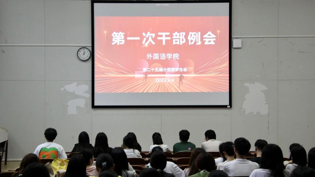 凝聚新力量,奔赴新征程。为更好地部署推动新学期我院学生干部工作,9月4日中午,学院于外语楼北110教室召开本学期第一次学生干部例会,党总支书记贺琴琴、副书记欧阳竹、学工办主任邱国周、辅导员老师龚晨阳、陈琴和刘志伟出席本次会议,全体学生干部参加会议。