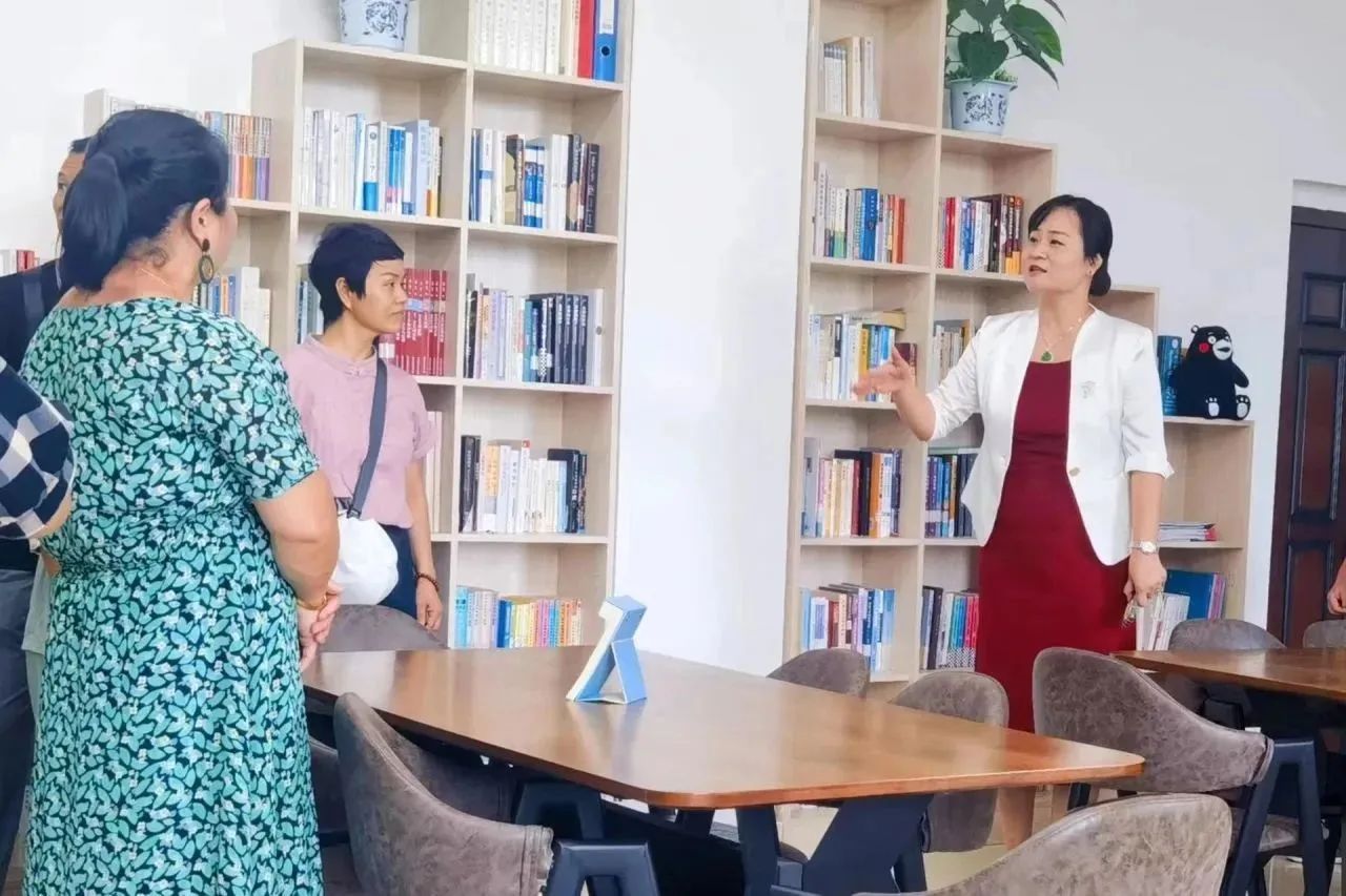 (贺琴琴向家长代表介绍yL23411永利集团官网登录“读书吧”)