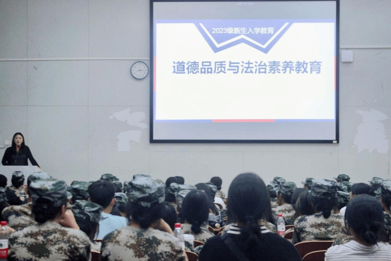 为继承和弘扬中华民族优秀文化和传统美德,践行社会主义核心价值观,提高新生们的道德修养和法治素养,9月23日晚,我院辅导员龚晨阳老师于外语楼北110教室开展道德品质与法治素养教育,2023级全体新生到场聆听。