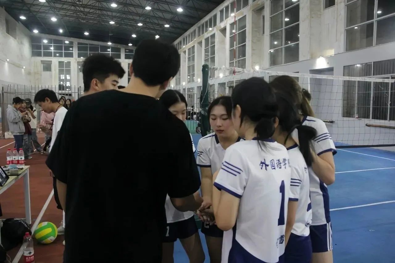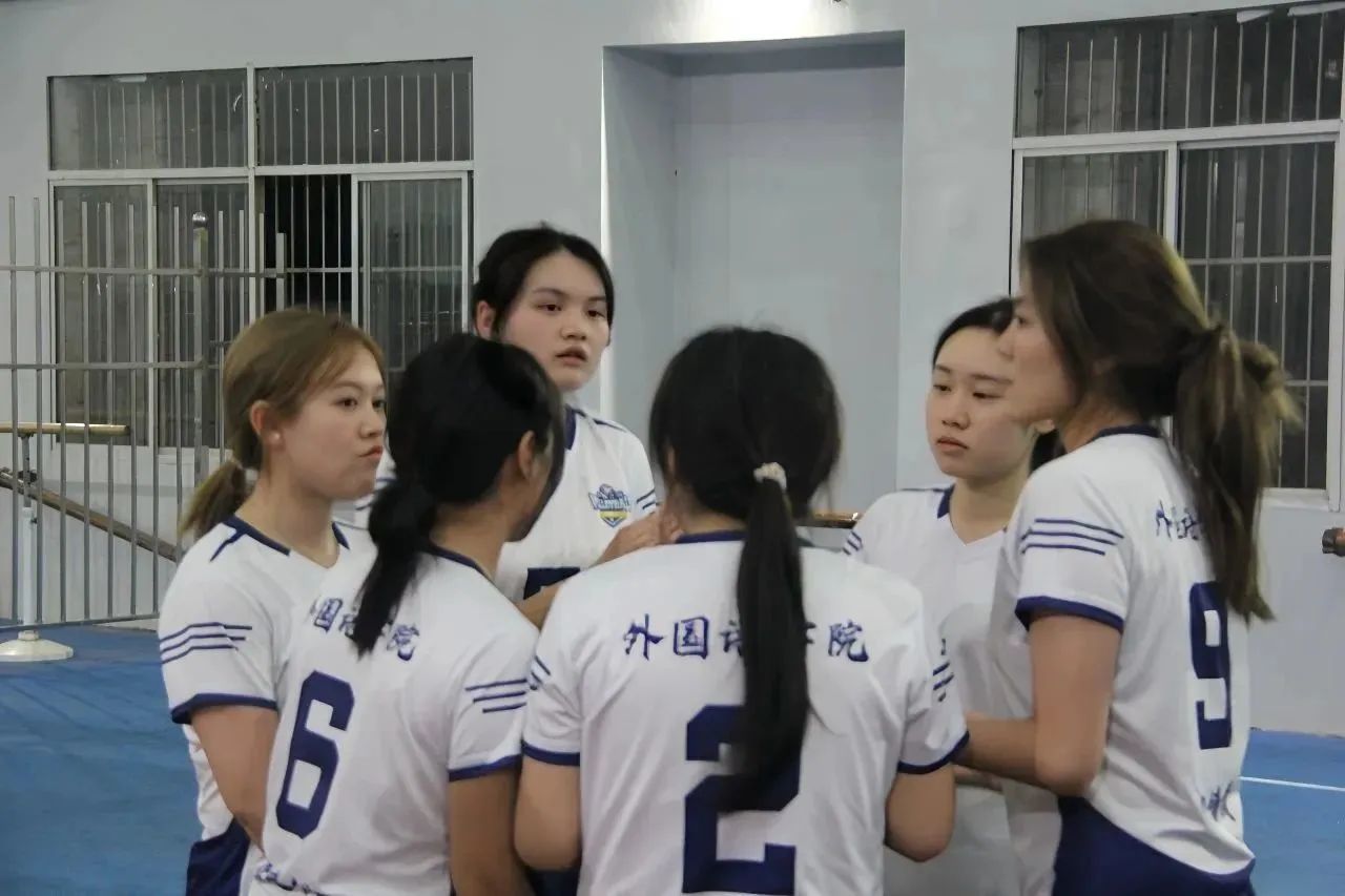 场上的紧张气氛达到最高点,场外“外院、加油”的助威声铿锵有力,此起彼伏。中场暂停,队员们齐聚一旁,仔细聆听教练的指导,丝毫不敢松懈。她们坚信,胜利就在前方!