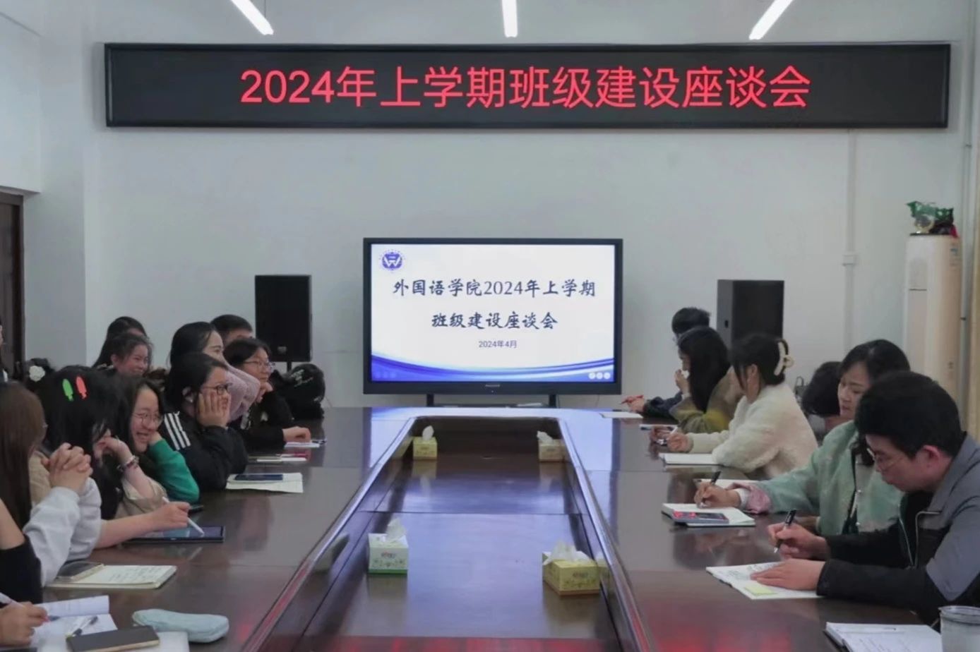 为进一步加强班级建设,提升班级凝聚力,4月9日下午15:00,我院于外语楼南213会议室召开班级建设座谈会。党总支书记贺琴琴、副书记欧阳竹、学工办主任邱国周、辅导员老师龚晨阳、陈琴、刘方红出席,学生会主席团成员和2021-2023级班长参加,会议由欧阳竹主持。