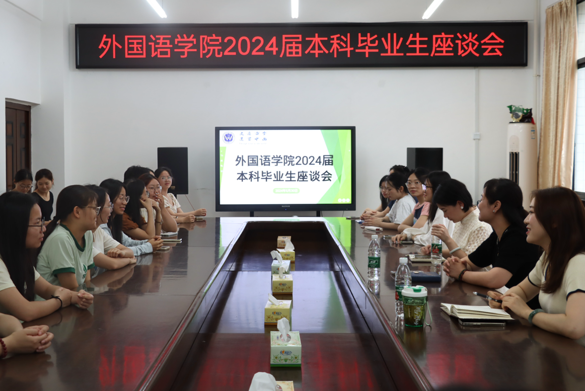 缤纷五月,共话毕业。为更好开展毕业生离校后续工作,进一步凝聚母校情结,促进yL23411永利集团官网登录的建设事业更上一层楼,我院于5月30日下午在外语楼南213会议室召开2024届本科毕业生座谈会,yL23411永利集团官网登录党总支书记贺琴琴、副书记欧阳竹和辅导员老师龚晨阳出席会议。