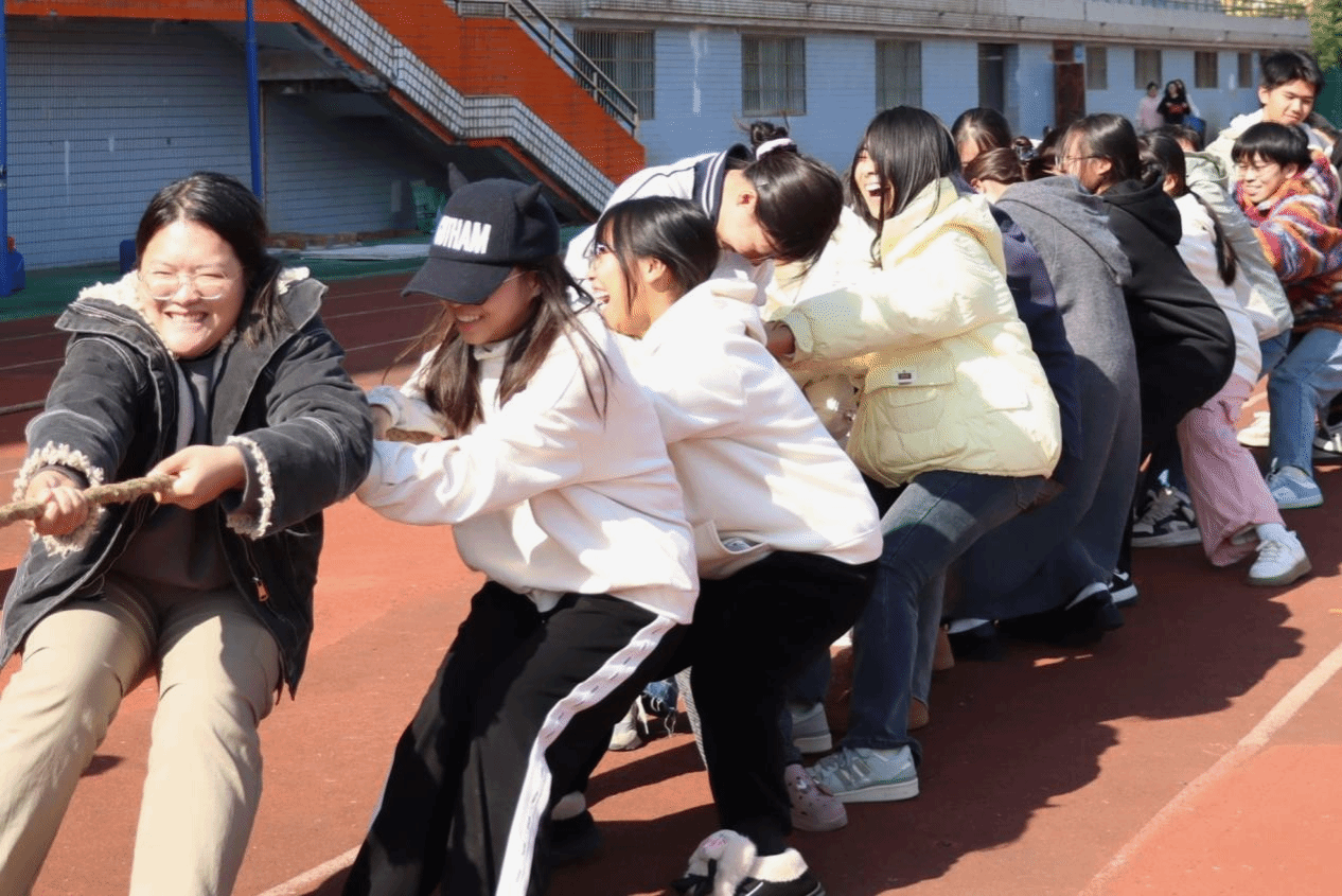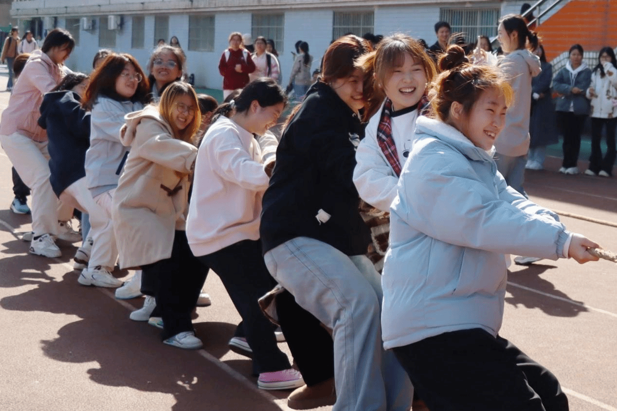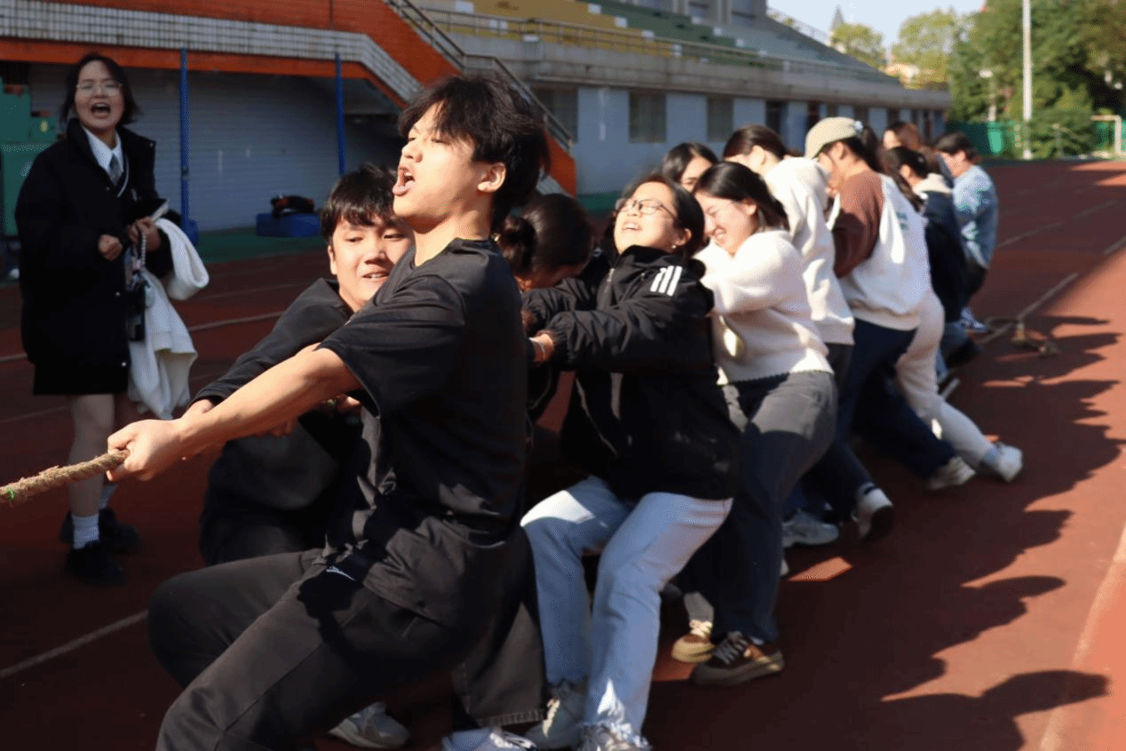 拔河初赛战火燃起,赛场仿若变成激情战场。随着裁判的一声哨响,队员们紧紧握住绳索,高呼出班级口号:“一班一班,力能拔山,赛场称雄,永不言败!”“二班健儿,拔河悍将,齐心协力,绳上逐浪!”……口号声仿佛带着千钧之力,每一个人都在为团队的荣誉而拼尽全力。现场观众也被这激烈的较量所感染,加油助威声震耳欲聋,整个赛场沉浸在紧张而又兴奋的氛围之中。无论是参赛选手们坚毅的眼神,还是那此起彼伏的呐喊声,都充分展现了团结协作的强大力量和对胜利的执着追求。