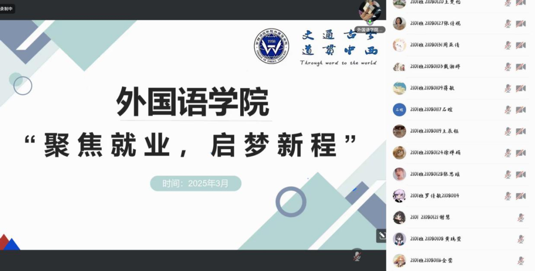 为切实做好2025届毕业生就业指导工作,3月19日晚上18:40,我院召开2025届毕业生“聚焦就业,启梦新程”就业指导线上会议。会议由学院党总支副书记欧阳竹主讲,就业专干陈琴主持,2025届全体毕业生参加会议。