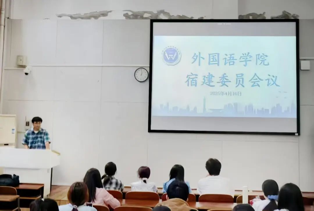 为深化宿舍安全文明建设,提高我院宿建委员队伍的整体素质和工作能力,促进和谐文明宿舍环境构建,4月10日下午13点,我院于外语楼北110教室召开宿建委员会议。辅导员邓昭樟出席会议,2024级全体宿建委员参加会议。