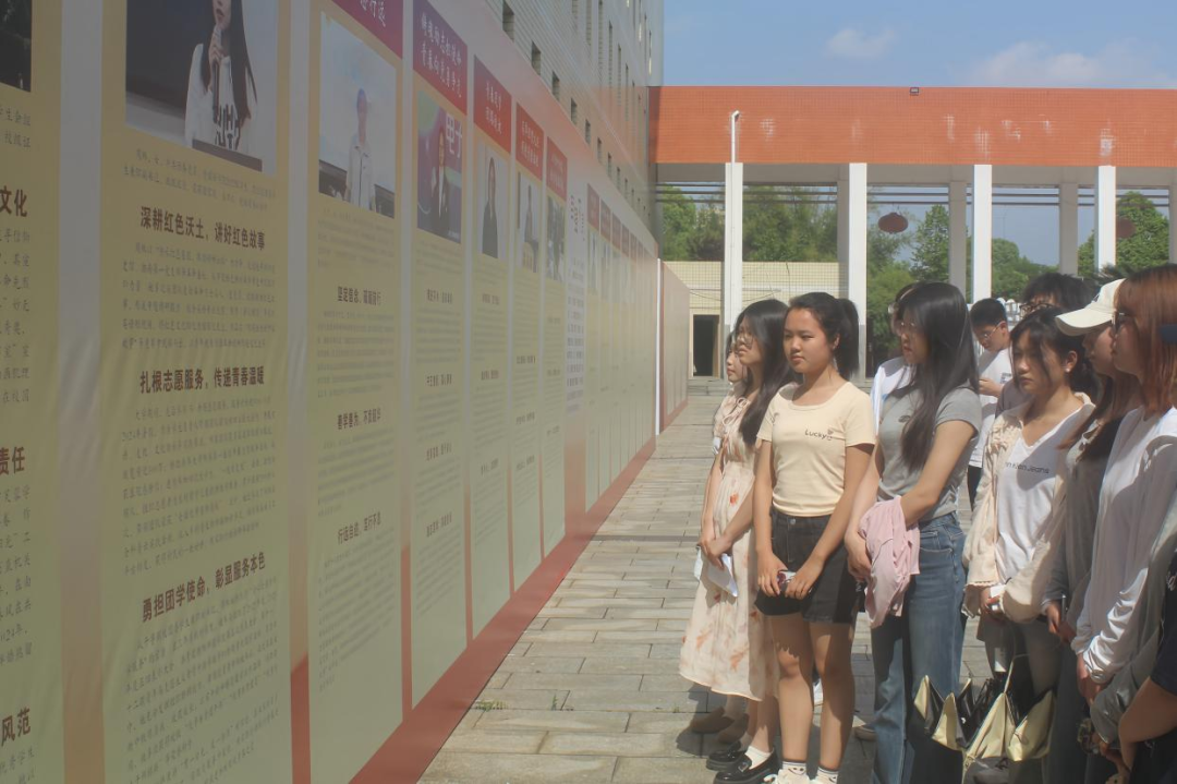 活动期间,各团支部学生有序前往东校区音乐楼中庭,参观2024-2025学年度“共青团先进集体和个人”事迹展。展览集中展示了五四红旗团委、五四红旗团支部、优秀共青团员、优秀共青团干部及湖南省“芙蓉学子·榜样力量”等先进集体和个人的奋斗历程与突出成果。展板上的图文资料生动呈现了榜样们在思想引领、学术科研、社会实践、志愿服务等领域的担当与作为,吸引同学们驻足观看、交流讨论。不少学生表示,通过近距离了解榜样事迹,深刻感受到五四精神在新时代的鲜活实践,也明晰了青年学子应有的责任与使命。