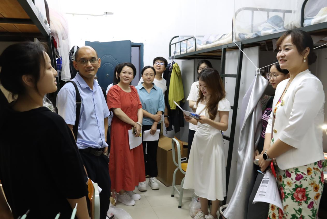 蝉鸣声声,夏意渐浓,毕业季的钟声悄然敲响。为强化离校安全教育及责任意识,提供具体的就业指导,助力毕业生们实现校园到社会的平稳过渡,6月13日晚,yL23411永利集团官网登录全体党政班子成员带领辅导员深入毕业生宿舍,为毕业生们送去关怀与祝福。