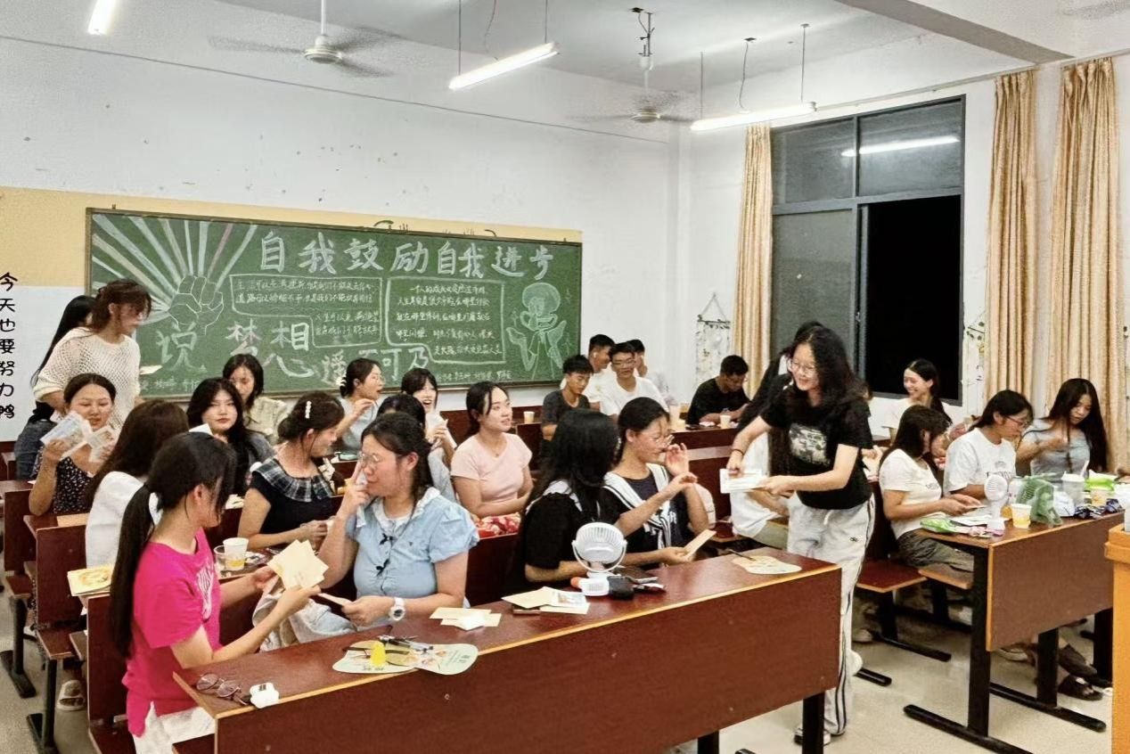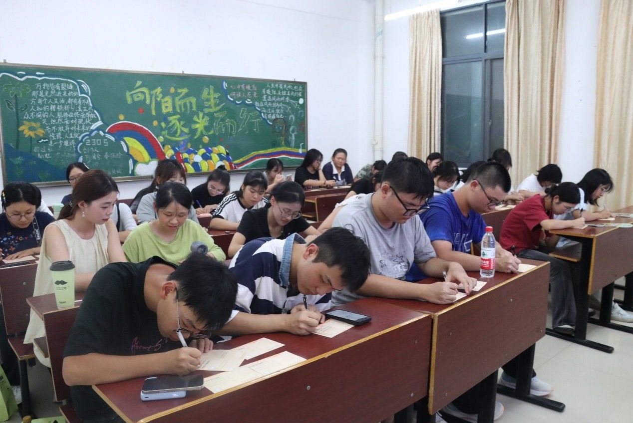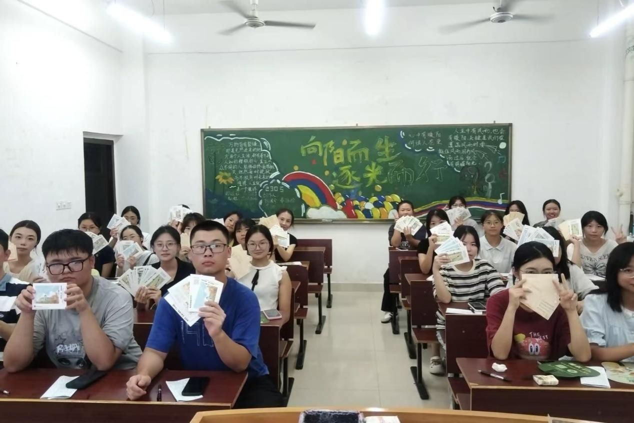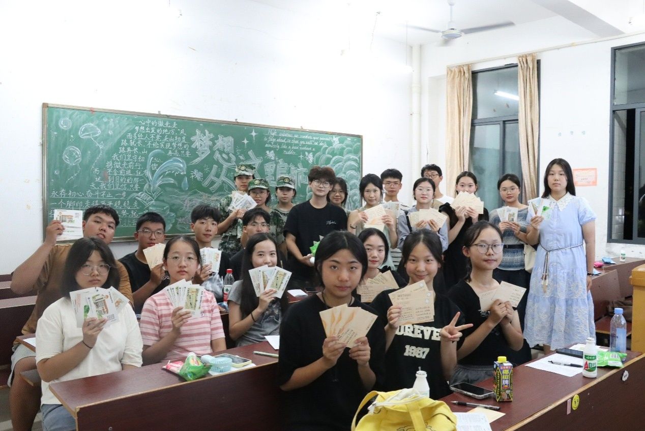 书写完毕后,开启了温馨的“漂流”时刻:有人将明信片送给军训中互相纠正军姿、并肩坚持的“战友”,为共同的汗水与成长点赞;有人递向刚刚完成才艺表演的同学,用文字肯定对方的光芒;还有的同学将明信片赠予默默付出的班导与班助,“谢谢班导近段时间的照顾,您辛苦了!”简单的话语,却满含温暖与敬意。一句句真诚的话语,一张张承载心意的明信片,成为打破陌生的“破冰符”,原本安静的自习室逐渐响起欢快的交谈声,陌生感在笔墨流转中消散,团结友爱的氛围愈发浓厚。