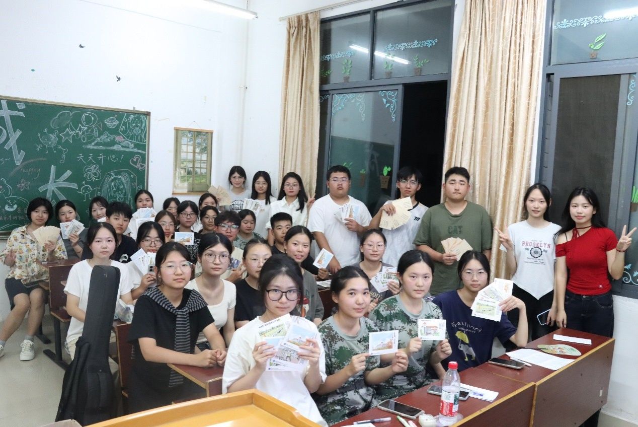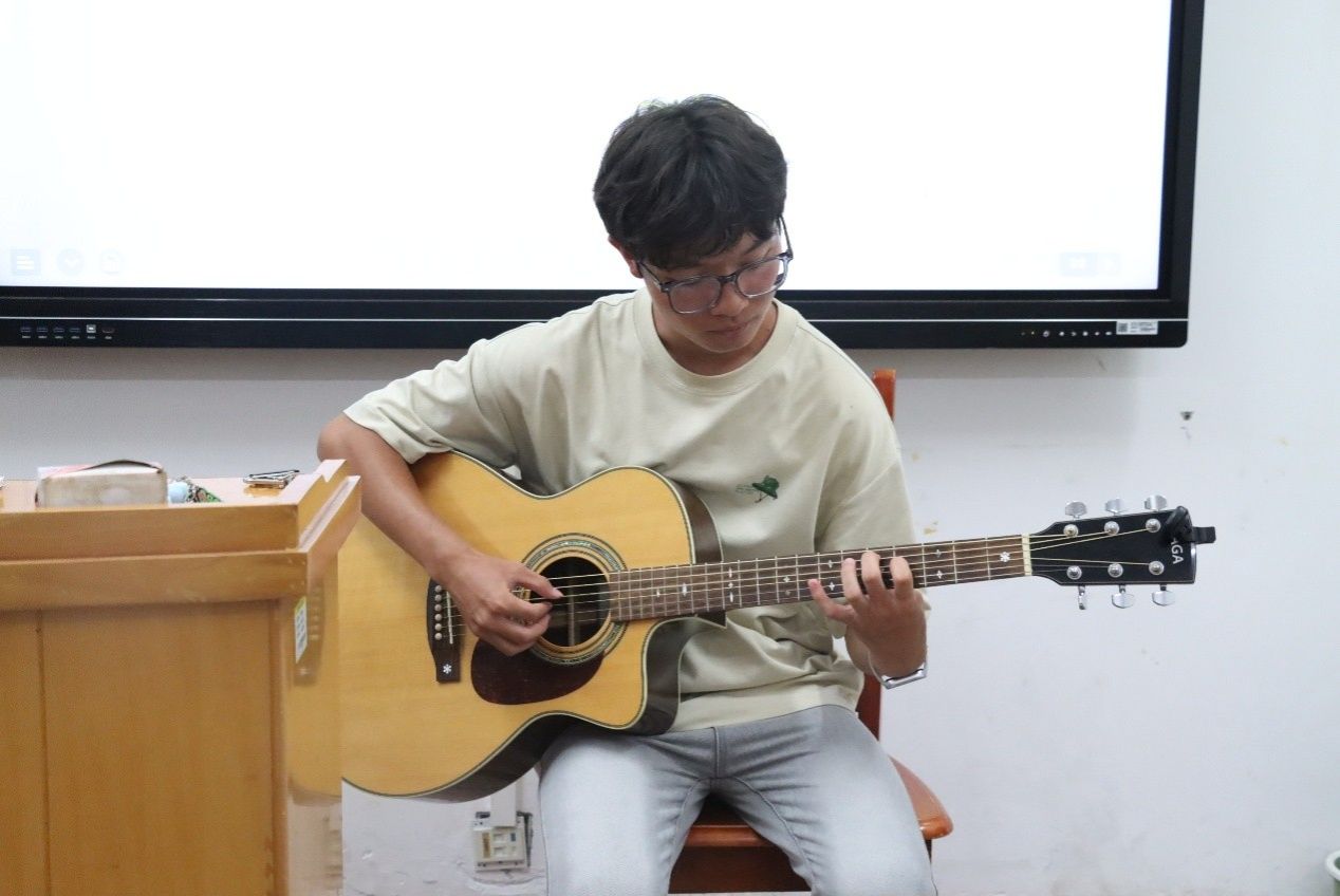 定制明信片漂流结束后,大家从最初的略带羞涩,到逐渐放开拘束,用鲜活的表达勾勒出独特的自我。有人带着家乡的印记,分享着方言里的趣味词汇;有人围绕语言爱好展开,讲述自己为练口语追过的外语影视剧;还有人直接开启“才艺秀”——吟唱英文歌曲,弹奏吉他……这些生动的表达、精彩的表演不仅让现场掌声不断,更让同学们在欢笑中快速记住了彼此的名字与特长,现场氛围热烈。