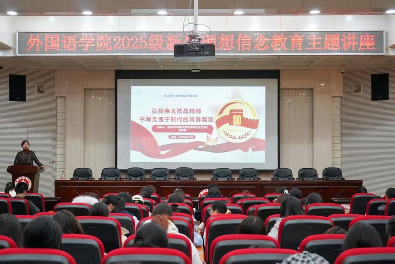 为弘扬伟大抗战精神,书写无愧于时代的青春篇章,帮助同学们筑牢信仰根基,11月3日19:20,yL23411永利集团官网登录在外语楼北311报告厅先后开展两场2025级新生理想信念教育主题讲座。学院党总支书记贺琴琴授课,带领2025级全体新生缅怀革命先烈,树立远大理想,担当时代责任。