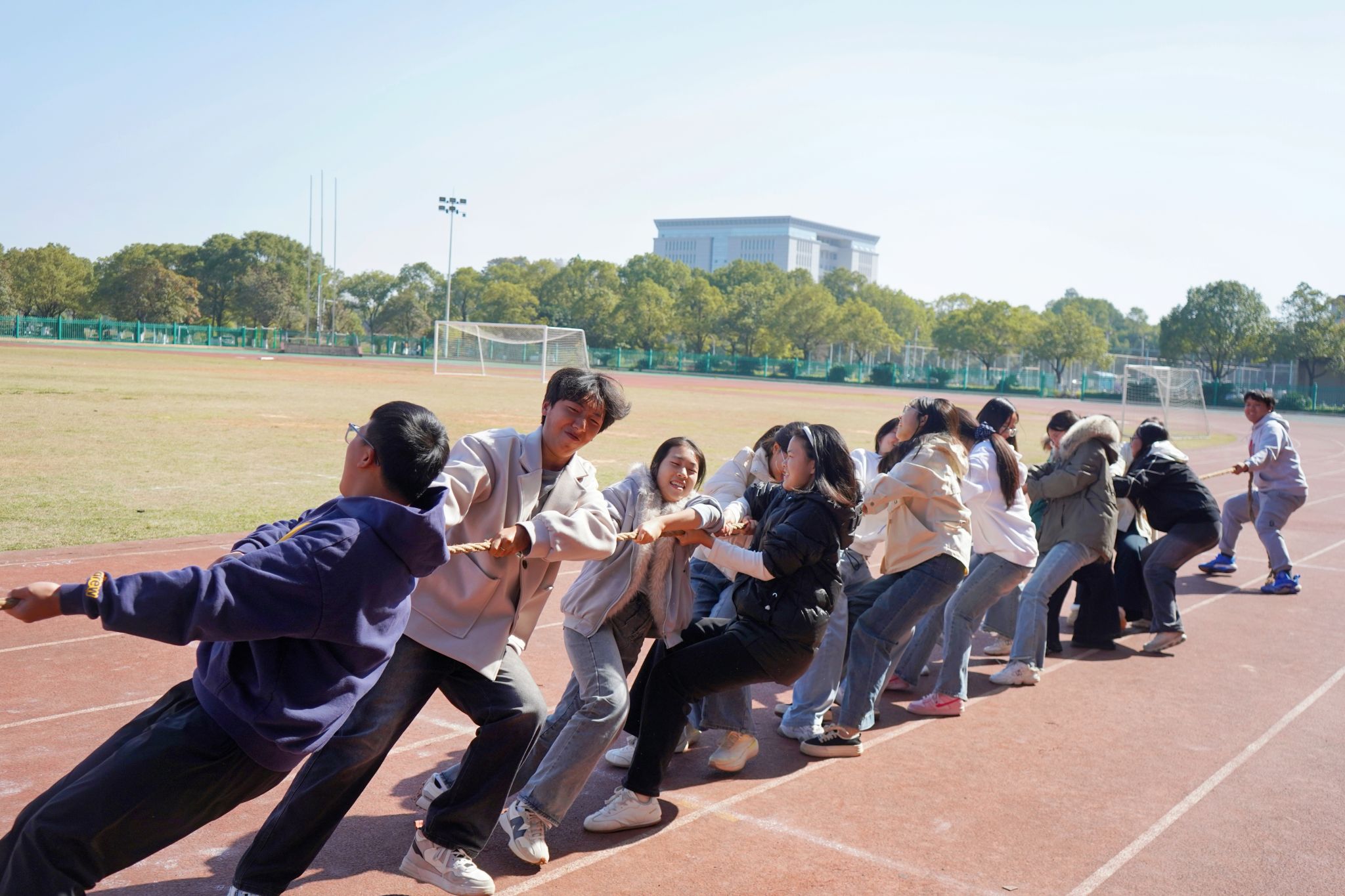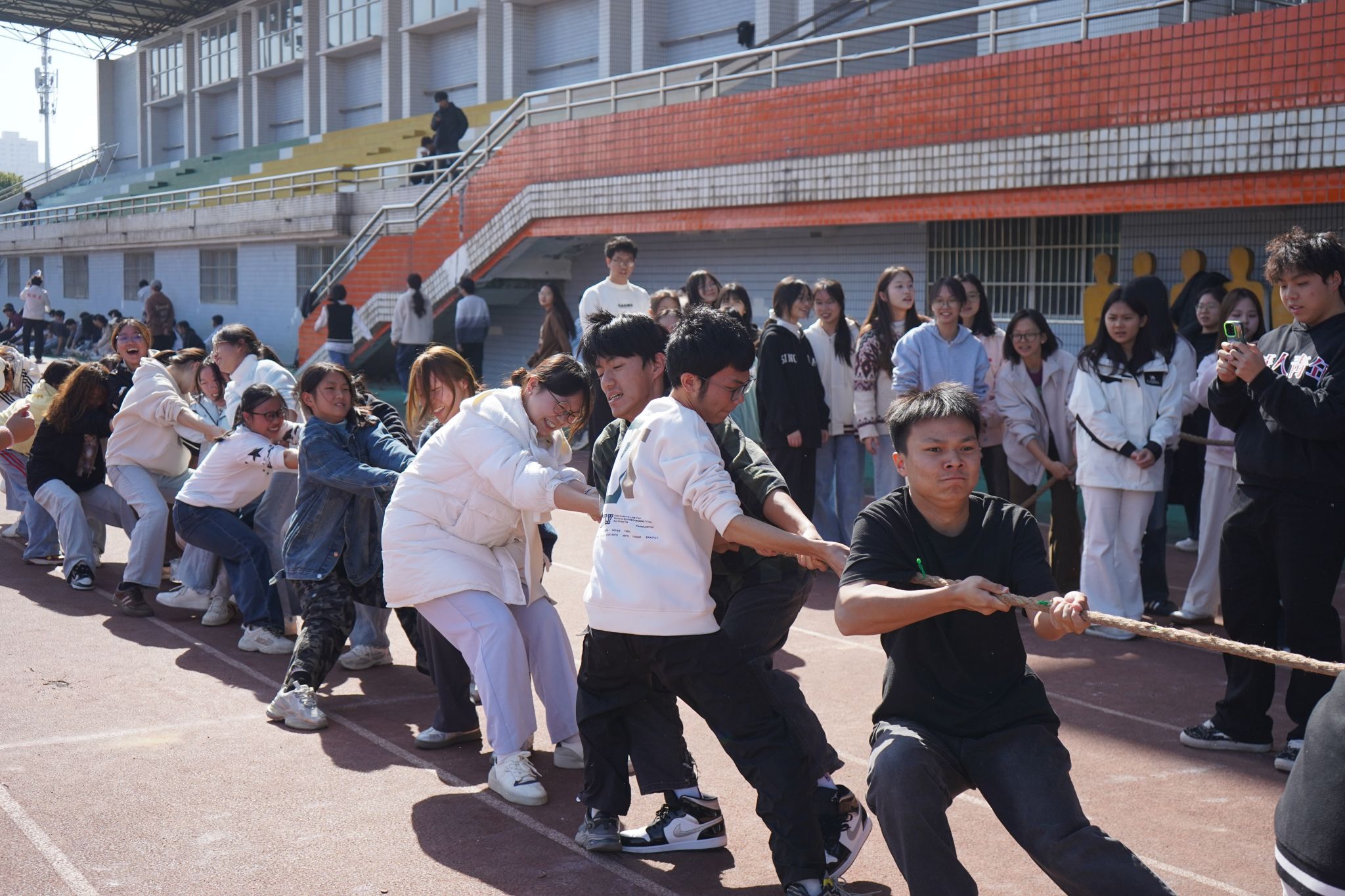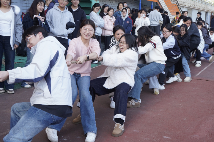 为丰富校园文化生活,进一步增强班级凝聚力与集体荣誉感,近日,我院依托“她世界”女生教育工作室成长交流平台,组织开展班级协作竞技活动。11月27日12:50,“凝心聚力,‘绳'采飞扬”第四届集体拔河比赛在风雨田径场拉开帷幕,学院学工办主任邱国周,辅导员陈琴、曾超、刘方红,以及研究生队伍和全体2024和2025级同学们集聚赛场,在拔河赛道上协作发力,竞技成长,共同书写青春风采。