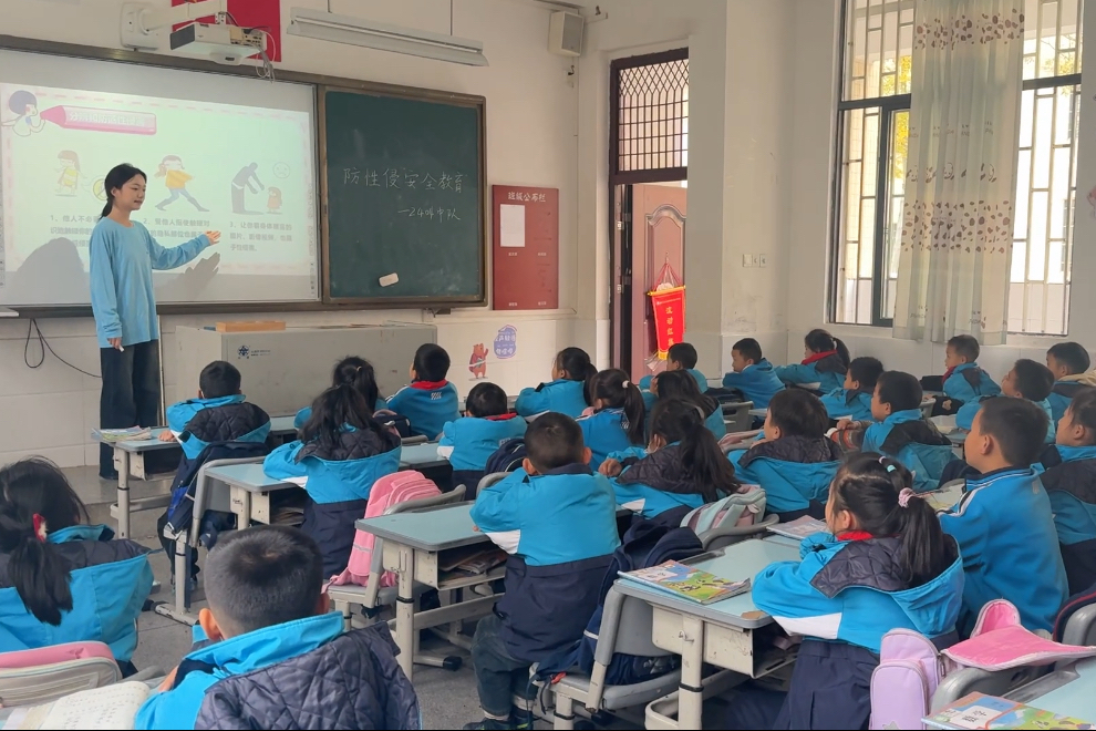 “有人让你看奇怪视频怎么办?”“告诉爸爸妈妈!”“马上跑开!”生活场景模拟环节,孩子们的回答充满童真却精准。“小老师”趁机补充关键提醒:“近七成伤害可能来自认识的人,比如邻居、亲戚,大家更要提高警惕。”随后总结的3条“安全守则”——“换衣服要关门”“不单独去偏僻处”“陌生人零食不能要”,更是在孩子们的跟读中,变成刻进心里的行动指南。