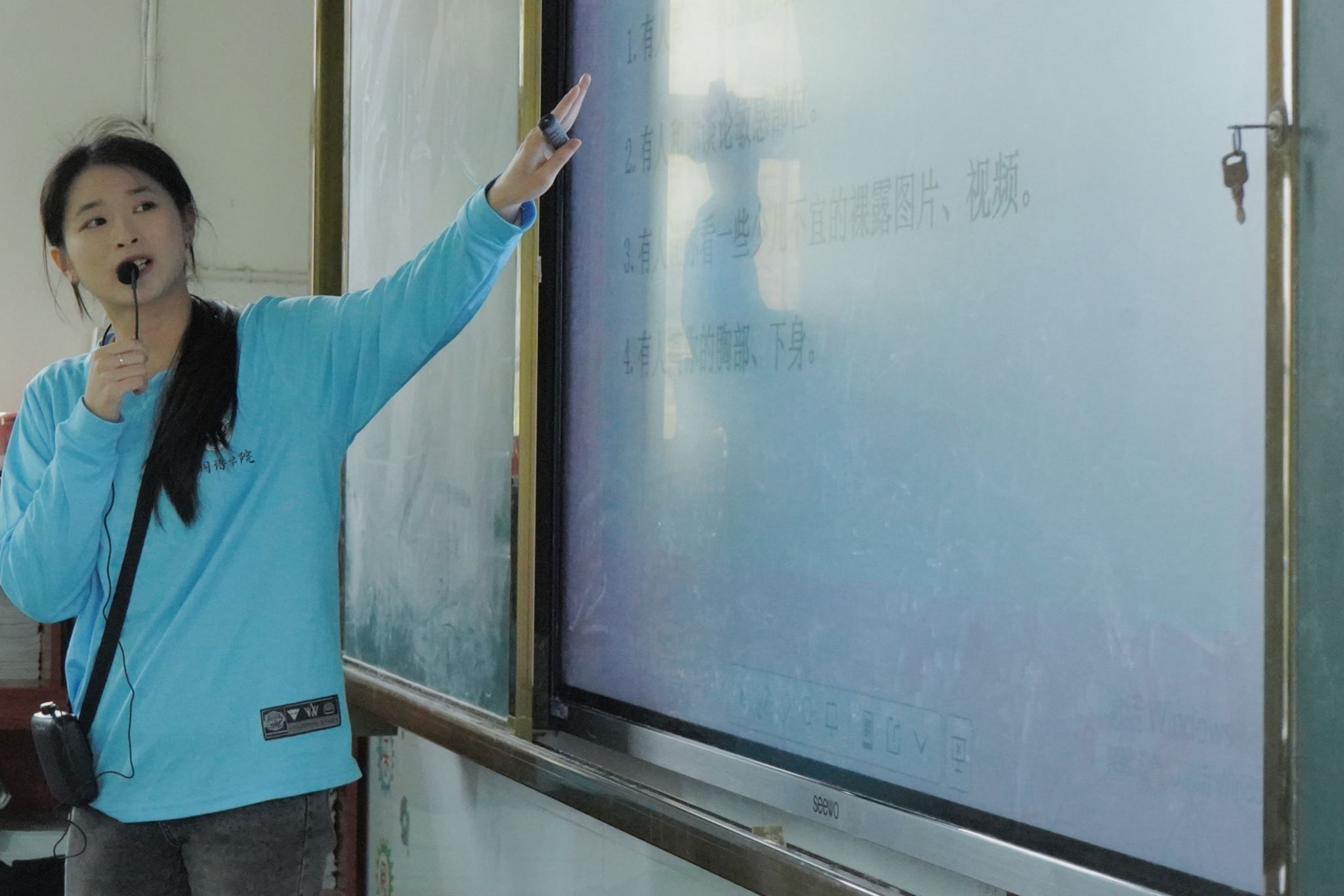 宣讲团化身“安全向导”,用情景模拟、案例拆解讲清“什么是性侵害”“怎么辨危险”,鼓励孩子勇敢说“不”。问到“遇侵害怎么办”,孩子们先安静思索,随即纷纷举手:“要跑!”“告诉爸爸妈妈!”;更特意强调“熟人作案”的风险——通过典型案例让孩子们明白:哪怕是熟悉的人,只要接触让自己不舒服,就要大胆拒绝,帮孩子建立更全面的防范意识。
