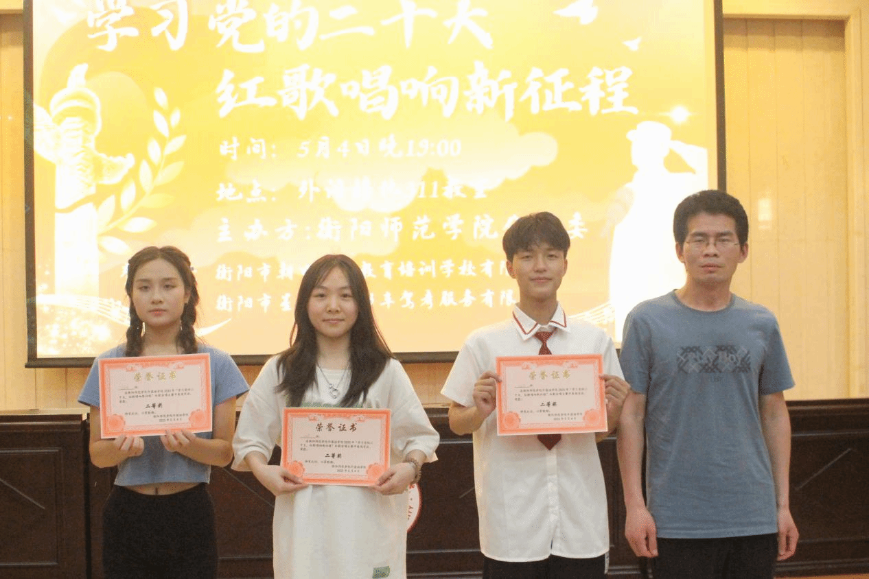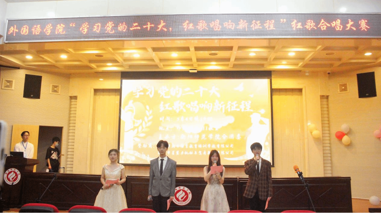 时光荏苒,岁月如歌,百年征程谱新篇;红歌传承,青春涌流,唱响时代最强音。时逢五四青年节,为激发同学们的爱党爱国热情,弘扬革命传统,培育民族精神,展示青年风采,凝聚奋进力量,yL23411永利集团官网登录分团委于5月4日晚上19点,在外语楼北311隆重举行“学习党的二十大,红歌唱响新征程”红歌合唱大赛。yL23411永利集团官网登录党总支书记贺琴琴、副院长何文娟、学工办主任邱国周、辅导员龚晨阳、刘志伟、陈琴出席本次活动。