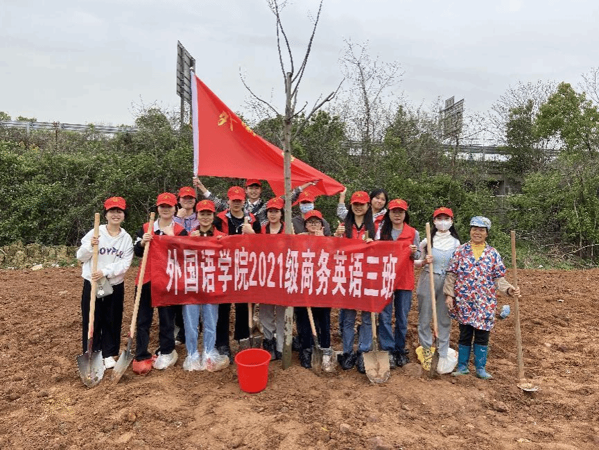 阳春三月,绿意萌动,春风十里,不及一抹绿意。2023年3月12日是我国第45个植树节,当天上午,我院2021级商务英语三班团支部组织青年志愿者20余人,在衡阳市雁峰区白沙洲金龙社区开展“义务植树 绿化家园”主题团日活动。志愿者们以实际行动践行“绿水青山就是金山银山”理念,推动城市绿色发展,助力衡阳市争创全国文明城市。