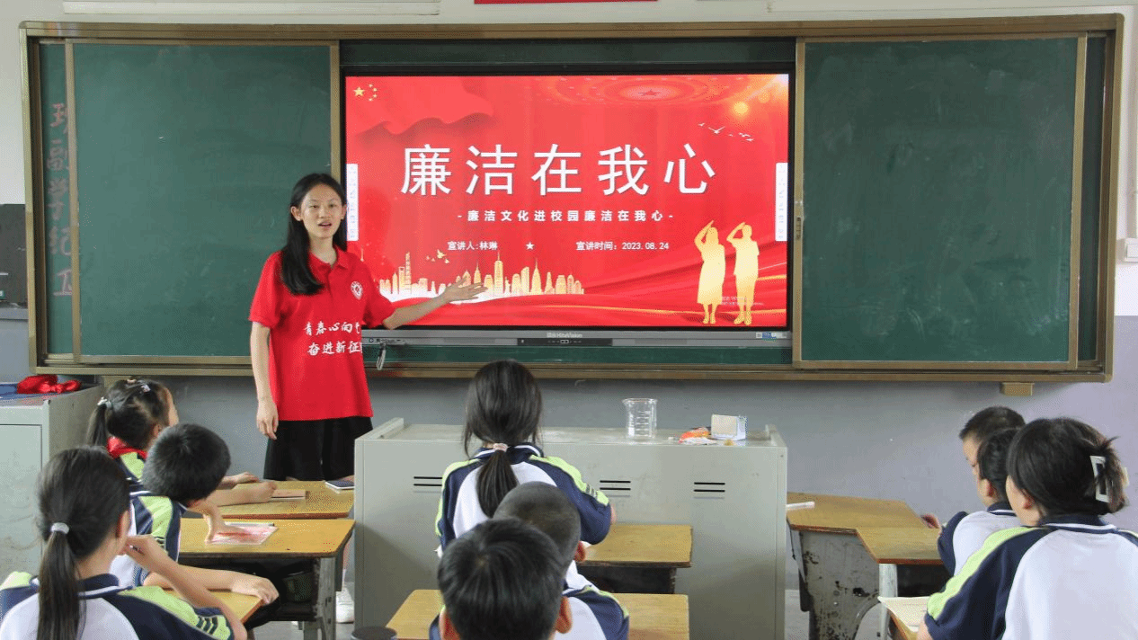 德育在五育中起主导作用,为赓续红色血脉,传承红色基因,志愿服务团为明德小学的孩子们开展了一堂特色“红色课堂”。志愿者们带领孩子们走进历史长河,回顾党的光辉历史、学习党的廉政精神,引导孩子们树立正确的人生观、价值观,在孩子们的心灵播种下为祖国自豪、自强、自信的种子,帮助孩子们扣好“人生的第一粒扣子”。