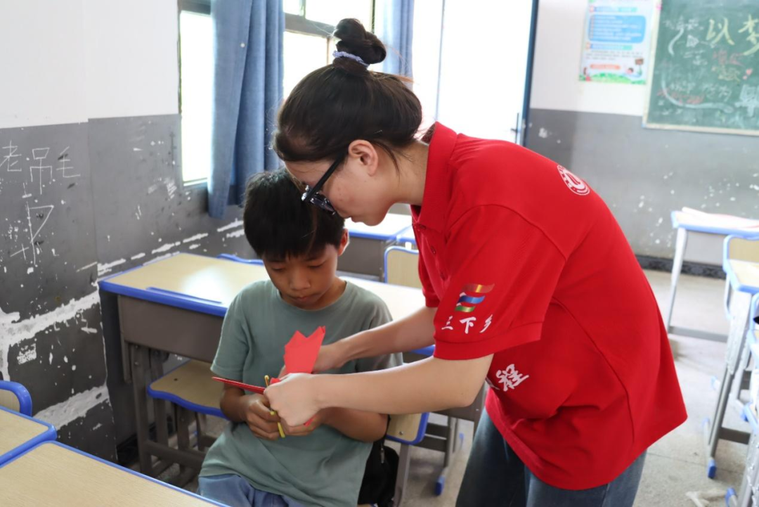 “一剪之趣奇神功,美在民间永不朽。”志愿者介绍了剪纸的历史渊源、文化内涵和艺术特点,并耐心地指导孩子们如何折纸、画图、剪裁,孩子们全神贯注地投入其中,手中的剪刀在彩纸上不停飞舞。一位志愿者分享道:“看到孩子们在剪纸过程中露出的开心笑容,我感到非常欣慰。这不仅是对我的一种肯定,也是对剪纸艺术传承的一种鼓励。”