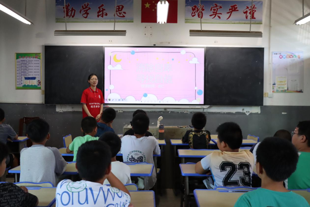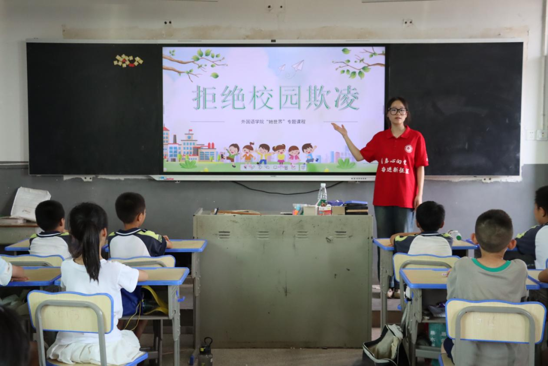 2024年夏天,yL23411永利集团官网登录“党润童心,‘语’梦启航”志愿团依托yL23411永利集团官网登录“她世界”女生教育工作室,将“自我引导、自我教育、自我管理”的指导方针和自尊、自立、自信、自强四自的理念带到了衡阳市珠晖区东阳渡镇新坪村明德小学。针对乡村留守女童情感缺失、生理认识不清晰和学业指导匮乏等问题,通过前期的数据搜寻、案例研究、多方协商探讨,“她世界”女生教育工作室采取问卷调查、生理小知识科普、防性侵讲座、防治校园欺凌主题教育、家庭走访和“小鱼信箱”(“她世界”女生教育工作室专注乡村留守女童长期开展的通信活动,将构建志愿者与留守女童一对一稳定时段的通信陪伴关系)等活动。