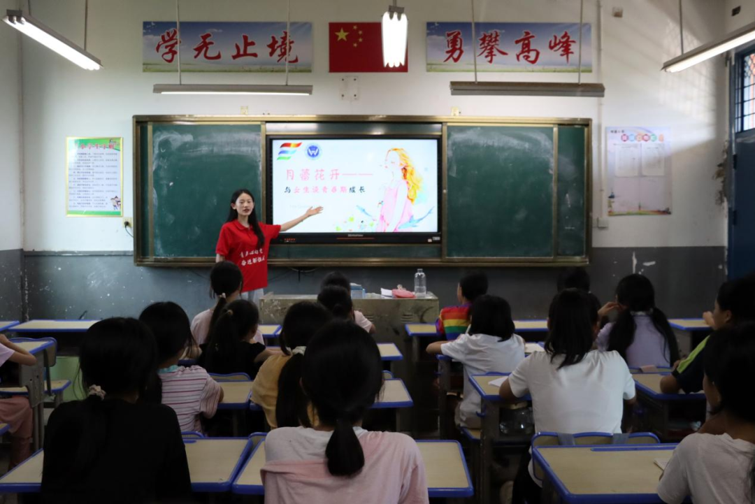 本次暑期实践活动,“她世界”女生教育工作室在明德小学开设“我的生命线”“预防校园霸凌”“生理小知识科普”等课程,以及“‘月蕾花开’——认识我们的身体”“防性侵安全教育”等女生专题课程,为处于心智发育关键时期的乡村儿童树立正确的价值观,提升其人身安全意识、普及生理常识,对自己的身体变化与性格特质有更深入的了解。