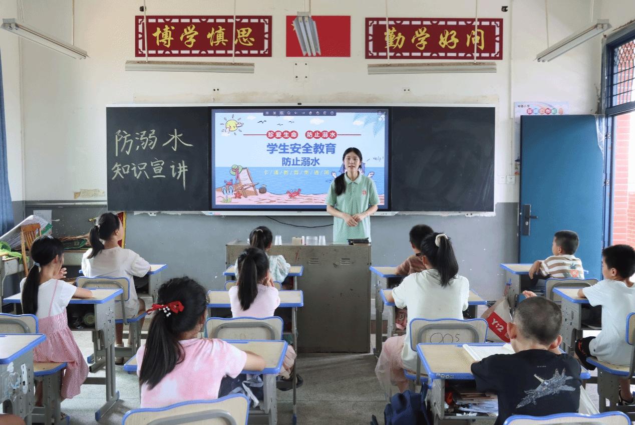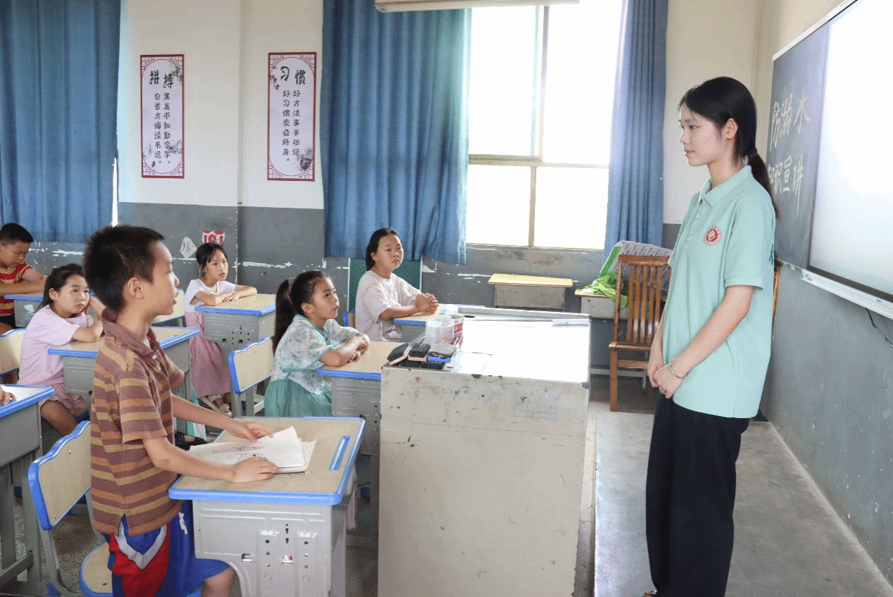 为助力乡村振兴,提升乡村儿童安全意识和语言文化素养,7月7日上午,yL23411永利集团官网登录“她力量·家国行”志愿服务团走进珠晖区东阳渡镇新坪村明德小学,开展防溺水安全教育与普通话推广实践活动,为乡村儿童带来了一场别开生面的“安全+语言”双课堂。