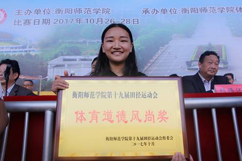 首先,参加闭幕式的领导和嘉宾为获奖集体颁奖。在本次校运会中,yL23411永利集团官网登录荣获团体总分第一名、学生普通组男女团体奖第八名、优秀组织奖、体育道德风尚奖的好成绩。祝贺各位获得荣誉的运动员,也希望我院在下一年的运动会中再创辉煌。