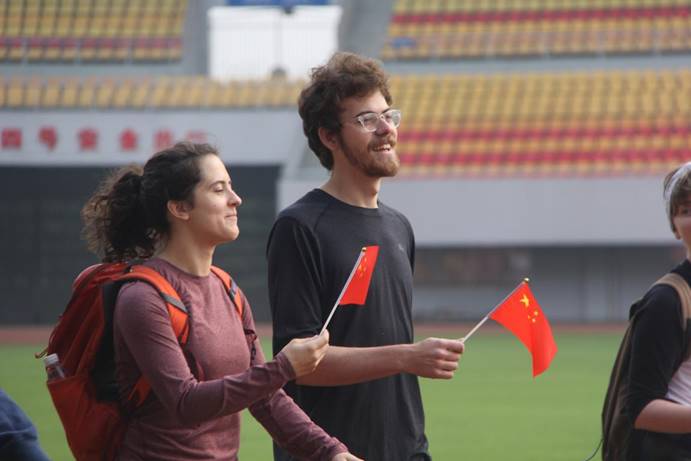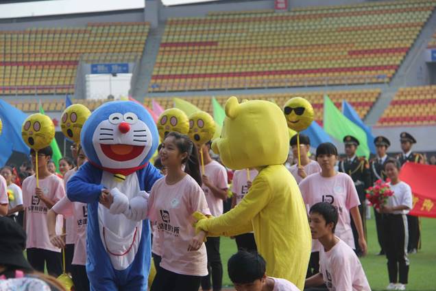 当然,最大的亮点还是阳光的全体教师方队以及来自异国他乡的外教们,同时可爱的熊本熊玩偶也不失为一大萌点。