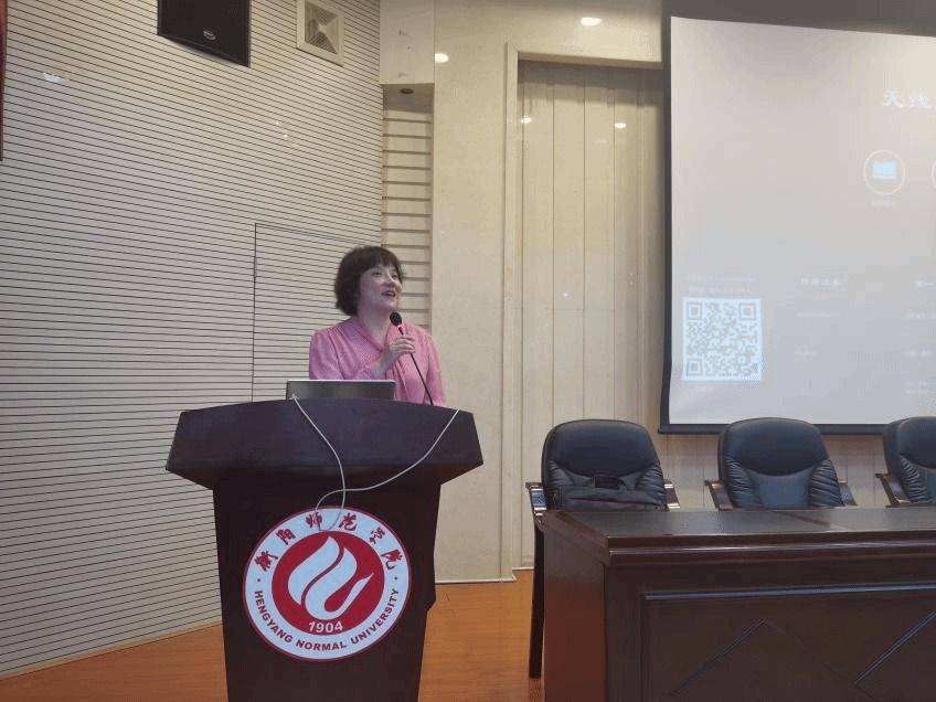 她首先介绍了自己多年来参加校级、省级、国家级各项教学大赛的精彩经历,强调了正是这么多年的大赛历练与经验的积累才能获得登上国赛舞台的机会。她说:“Passion is the beginning of success”追求源于热爱、热爱成就追求,希望每一个老师都能在教学中去发现和感受那一份热爱并持之以恒地去追求。接着,贺利燕老师真诚地感谢了在教学设计、课件制作、生活细节等各方面支持与鼓励过她的领导、同事与老师,还有学生们,她认为一个人可能走得很快,但一定是一群人才能走得更远。“Teamwork makes the dream work”。贺利燕老师还介绍了两项主要赛事,“湖南省高校课程思政大赛”和“外教社杯”全国外语教学大赛的赛制与要求,并分享了参赛的教学设计与亮点。贺利燕老师对教学素材的精准把握、对文本内涵的深度挖掘、对教学过程别出心裁的设计以及完全出于学生角度的充满人性关怀的思政融入引起了在场每一位老师的强烈共鸣。她说通过参赛,在对于不同教学理念的学习与运用、对于不同课型的教学设计与实施、对于外语课程思政的理解与领悟、对于学生获得感的思考与践行、对于教师成长路径的感悟与动力等方面都有非常大的提升。