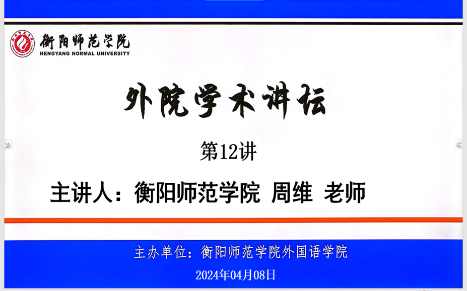2024年4月8日下午15:30,yL23411永利集团官网登录学术讲坛第12讲在东校区外语楼南311研究生会议室举行。周维老师作了一场题为《基于认知翻译学的<红楼梦>两个英译本中酒名的翻译分析》的学术报告。讲座由邬德平老师主持,我院部分教师及2023级全体硕士研究生参加了活动。