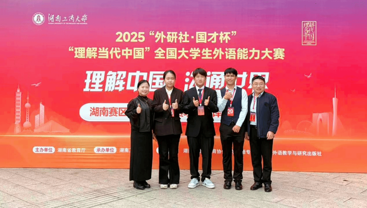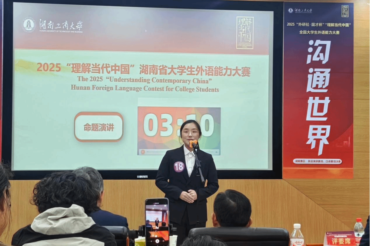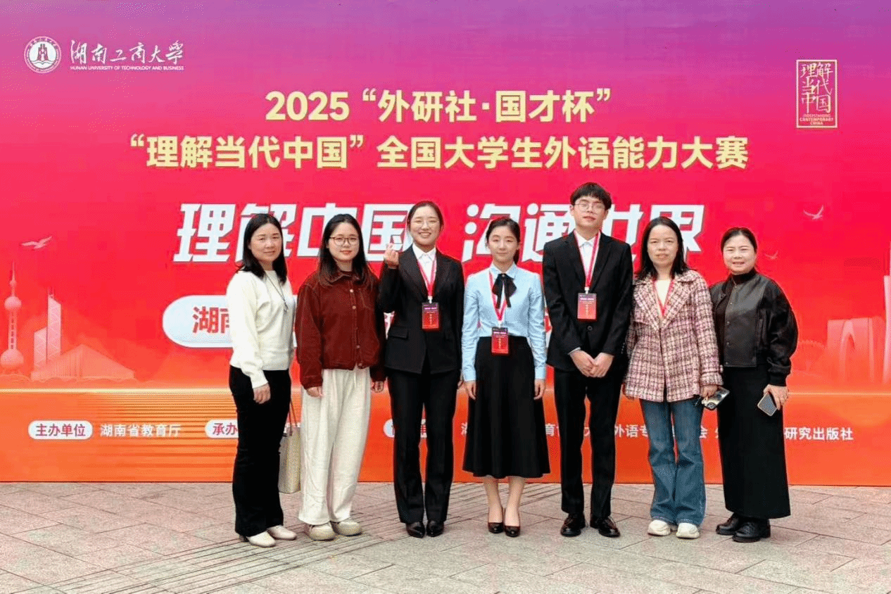 群雄逐鹿展风采,以赛育人谱新篇。2025 年 10 月 24 日至 26 日,由湖南省教育厅主办、湖南工商大学承办的 “2025 年外研社・国才杯‘理解当代中国’湖南省大学生英语能力大赛” 成功举办。本次大赛以习近平新时代中国特色社会主义思想为指引,深入贯彻党的二十大精神,紧扣立德树人根本任务,着力推进 “三进” 工作走深走实,为高校外语教学改革提供实践支撑,为学子搭建语言实践与跨文化交流的优质平台,助力培养兼具家国情怀与国际视野的实战型外语人才。