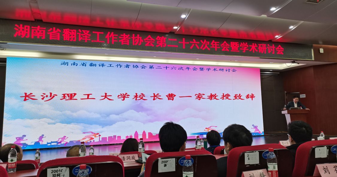 由湖南省翻译工作者协会主办、长沙理工大学yL23411永利集团官网登录承办的“湖南省翻译工作者协会第26次年会暨学术研讨会”于2020年12月4日至12月5日在长沙理工大学(云塘校区)国际学术交流中心举行。会议主题为“担当时代使命,建设翻译学科。”,下设三大分议题:一、翻译理论与实践研究;二、语言学与外语教学研究;三、文学与文化研究。本次会议采取大会主旨报告和专题研讨两种形式。来自湖南省各高校及翻译工作者协会的300余名专家、学者汇聚一堂,会议气氛紧张而热烈,主旨报告高瞻远瞩,讨论的问题尖端前沿,评委们的点评入木三分,让所有与会者收获满满。