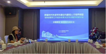 在10日下午的分组讨论环节中,翻译理论与实践1组由我院贺学耘教授及湖南科技大学禹玲院长主持。我院研究生孙雪鸿在该论坛上做了题为《湖湘红色文化英译现状及交际翻译策略研究》的主题汇报。