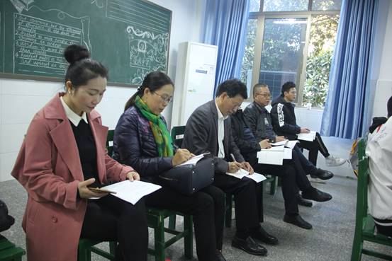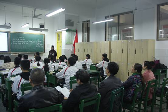 张登玉一行先观摩了何芳老师的汇报课。何老师的汇报课运用任务型教学方式,给同学们布置任务,指导他们执行任务并客观评估了任务。整堂课节奏流畅、主题突出、课件简洁生动。同学们积极配合、大胆发言,师生互动、小组合作的学习模式把课堂气氛推向一波又一波的高潮。 八中党总支书记宁中平、教研处副主任王再平也出席了汇报课。
