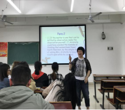 此次示范课出现了很多精彩的亮点,如:何文娟老师创新了“对分课堂”理念下:任务-叙事-导图 课堂模式实践,将翻转课堂运用到《基础英语》教学中,充分体现了以学生为主体的教学理念;刘萍老师十分注重学生写作中细节描写能力的提升,用巧妙的设计层层深入,重难点十分突出;欧妮莎老师发音标准优美,课堂掌控如鱼得水,展现了英语专业教师扎实的语音功底及高超的课堂驾驭能力;肖素英老师将高级英语与语言学及英语专业八级考试的知识联系起来,信息量大、知识点丰富,既有深度又有实用性;罗亚君老师独具匠心,将英语趣配音的片段用于课堂的导入,既服务了主题又培养了学生课后自主练习口语的意识,课堂氛围与教学效果俱佳。