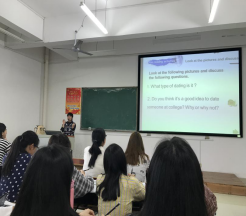 除了学习这些优秀老师的教学理念与方法之外,在座的老师也提出了一些建议与问题,如:如何将翻转课堂中学生所占据的时间合理化?如何更好的提升学生预习的效果?如何把握一堂课的节奏与容量?如何将知识性与实用性完美结合?是否该做到全英文授课?这些思考与讨论给本院英语专业教师带来了启发与触动。