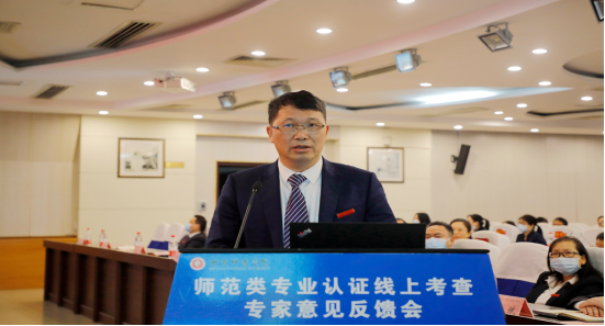 陈晓飞代表学校作表态发言,对专家组全面、严格、细致的线上考查工作表示敬意和感谢。他表示,学校将高度重视专家反馈意见,切实抓好问题整改。各师范类专业要坚持问题导向,强化问题意识、质量意识、发展意识、底线意识、危机意识,进一步明确努力方向和目标。他指出,全校上下要形成共识,牢固树立质量意识,以专业认证作为学校专业改革和建设的突破口,高效落实认证工作标准,提升专业建设水平;要坚守师范初心,聚焦师范主业,不断深化教师教育教学改革,建强教师教育学科,打造一流师范教育。(编辑/邱国周)