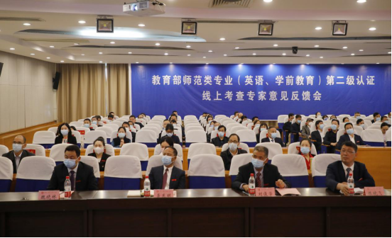 4月29日,yL23411永利集团官网登录在东校区办公楼六楼报告厅召开教育部师范类专业第二级认证线上考查专家意见反馈会。专家组全体成员,校党委书记陈晓飞,校长皮修平,副校长刘俊学、李玲玲、聂东明,纪委书记李斌,副校长魏晓林,党委委员、组织部部长唐艳等出席会议。会议由英语专业专家组组长曹杰旺主持。