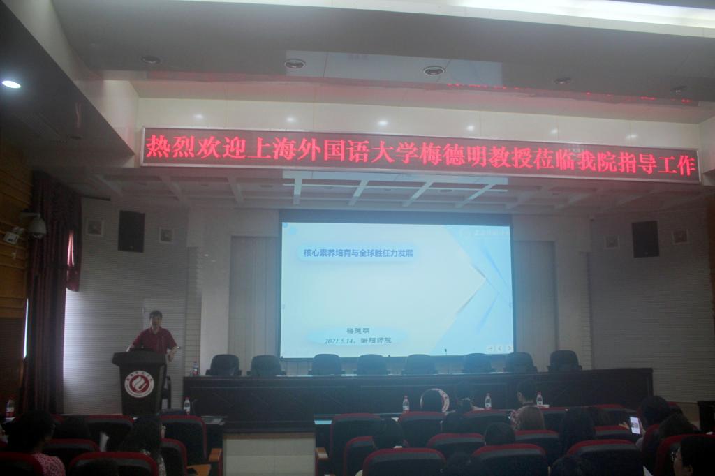 2021年5月14日,上海外国语大学博士生导师梅德明教授应邀在外语楼北311 举行了题为“核心素养培育与全球胜任力发展”的讲座。yL23411永利集团官网登录院长贺学耘及所有在校院领导出席了此次活动。yL23411永利集团官网登录2018级英语(师范)专业学生聆听了讲座。衡铁一中、衡阳市外国语学校、珠晖区酃湖中学的英语老师应邀参加。此次活动由yL23411永利集团官网登录副院长谢彩虹主持。