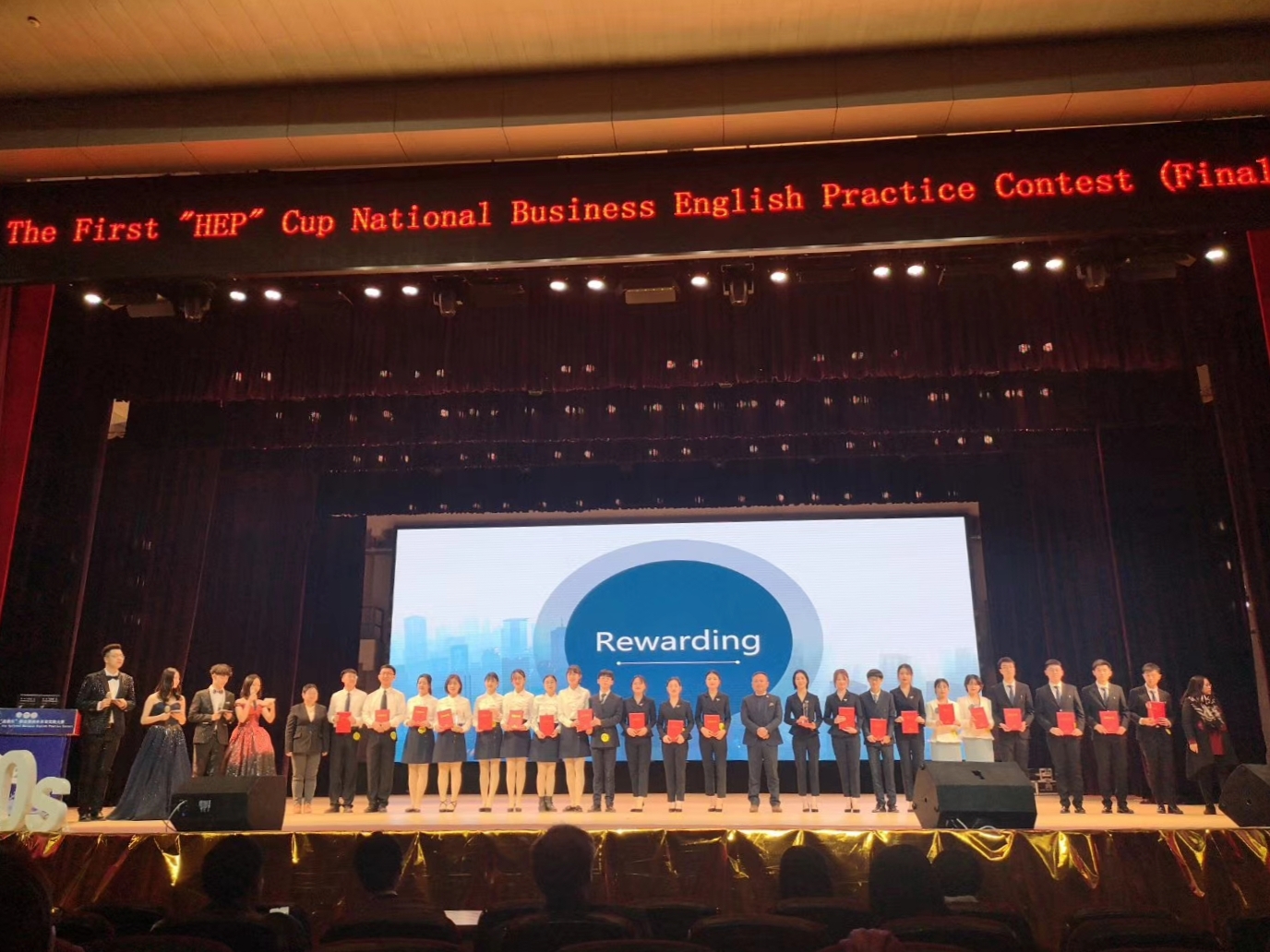 127日,由中国国际贸易协会国际商务英语研究会、广东外语外贸大学、高等教育出版社主办,广东外语外贸大学国际商务英语学院承办的第一届“高教社杯”全国商务英语实践大赛在云山会堂举行。经过激烈的角逐,我院Kueen小队在上午场半决赛中击败其它九所高校,成功进入全国总决赛并荣获二等奖佳绩。