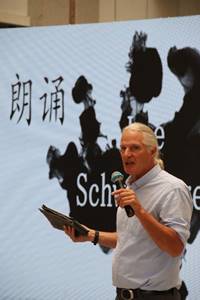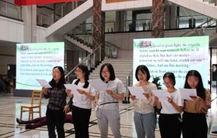 此次活动不仅满足了同学们在视觉方面的享受,还给同学们带来了一场听觉盛宴。Lee Schweninger教授先为我们带来了一段富有激情和感染力的英文诗朗诵。紧接着,来自哈萨克斯坦和吉尔吉斯斯坦的留学生们又为到场的观众们献上了饱含深情的中文诗朗诵——《孩子,我想对你说》。