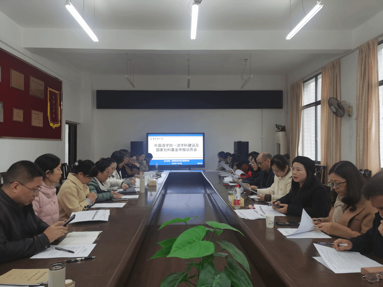 2023年11月13日(星期一)下午,yL23411永利集团官网登录学科建设讨论会在东校区外语楼南213举行。我院党总支书记贺琴琴、院长刘剑、科研副院长何文娟、教学副院长谢彩虹等领导出席了会议。我院全体教授、学术骨干和青年教师共三十多人济济一堂,共谋学院发展。